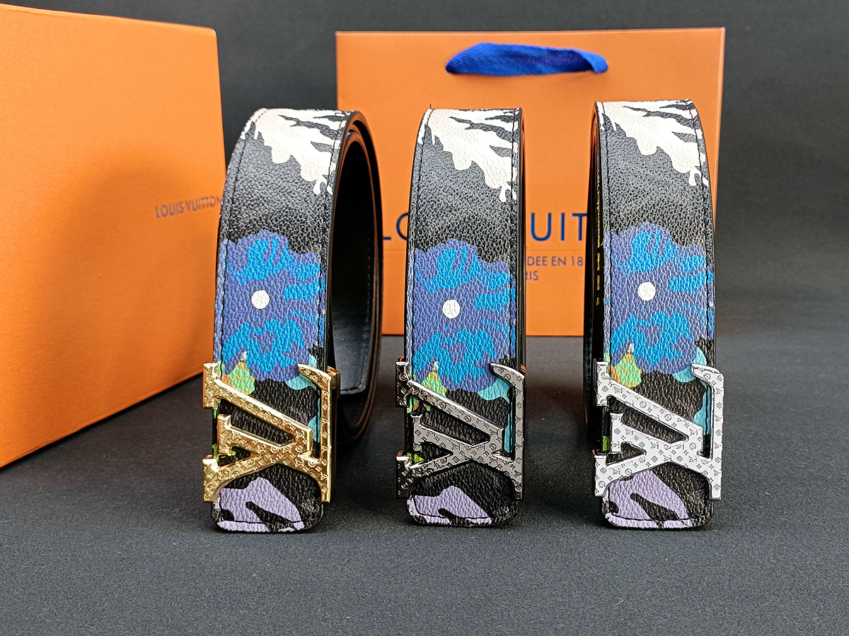 3 Colors luxury four-leaf clover graffiti carved belt