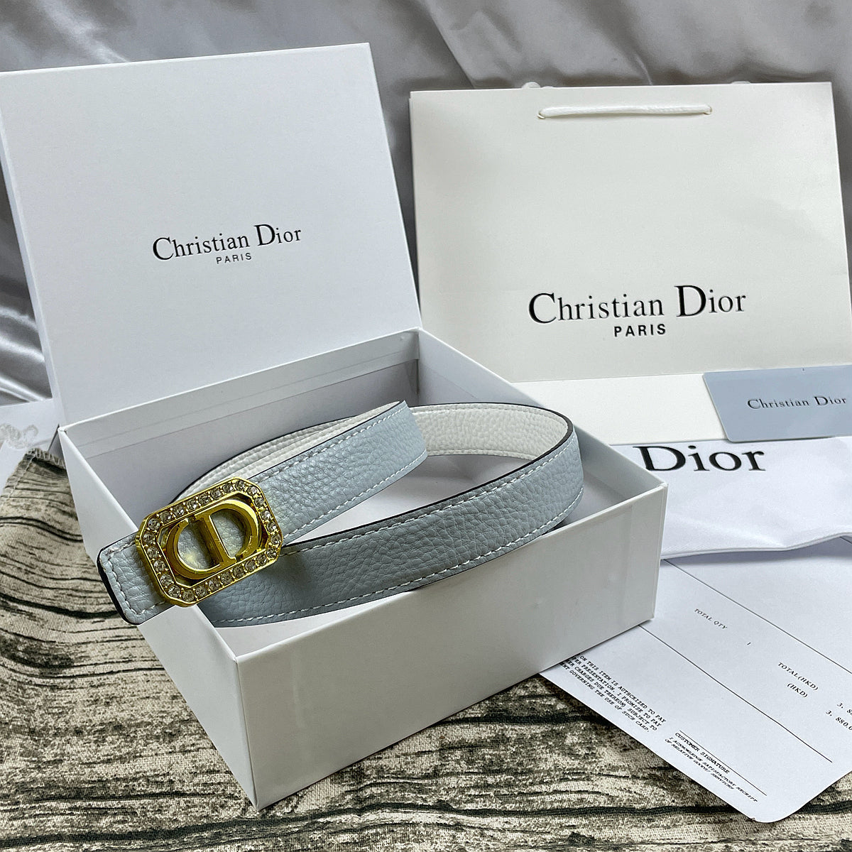 Product name: 6 color luxury rhinestone CD lychee pattern double-sided belt