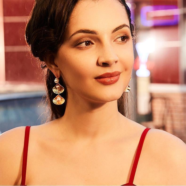 Double Shell Pearl Alloy Earrings