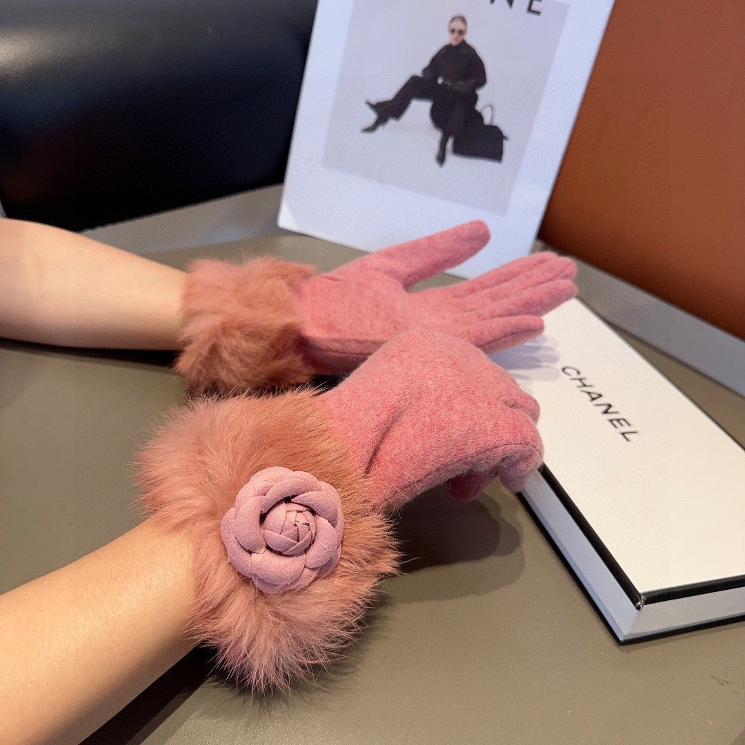 Fashion CC letter embroidered camellia gloves